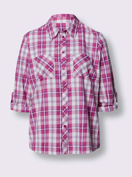 Ce chemisier à carreaux toujours élégant est facile à combiner. Le petit plus : les manches retroussables à longueur 3/4 ! Avec coutures poitrine, des poches plaquées sur la poitrine et manchettes boutonnées.