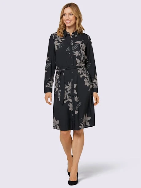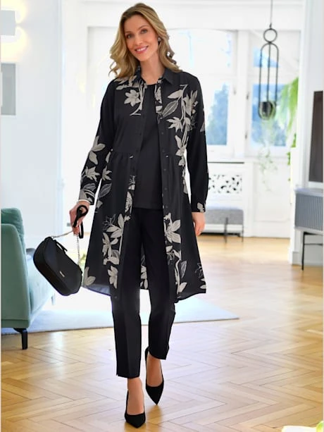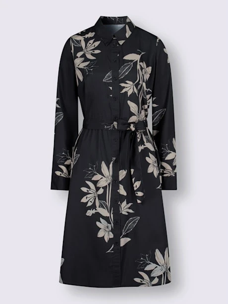 Deux en un : chemisier long pouvant également être porté comme une robe élégante. À vous de décider ! Col chemise et patte de boutonnage. Légères fronces sous la ceinture : la partie inférieure est ainsi légèrement et joliment évasée. Passants et ceinture à nouer. Manches longues à manchettes boutonnées. En polyester recyclé durable.