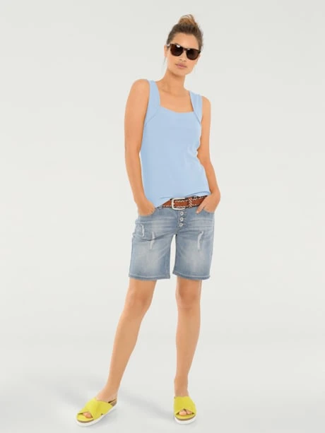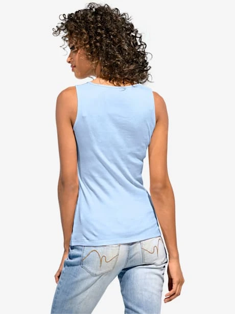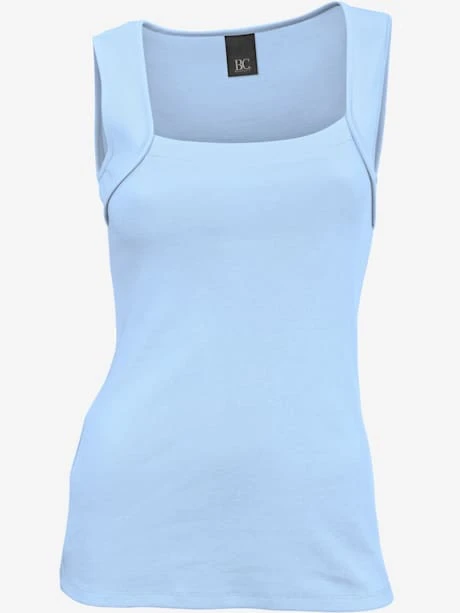 Débardeur à encolure carrée, basique et facile à associer. Matière facile d’entretien.