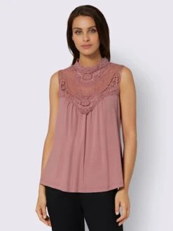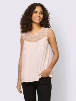Facile à assortir : débardeur avec empiècement en dentelle très féminin. Encolure en V. Viscose douce.