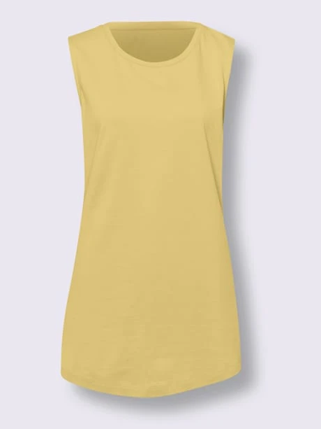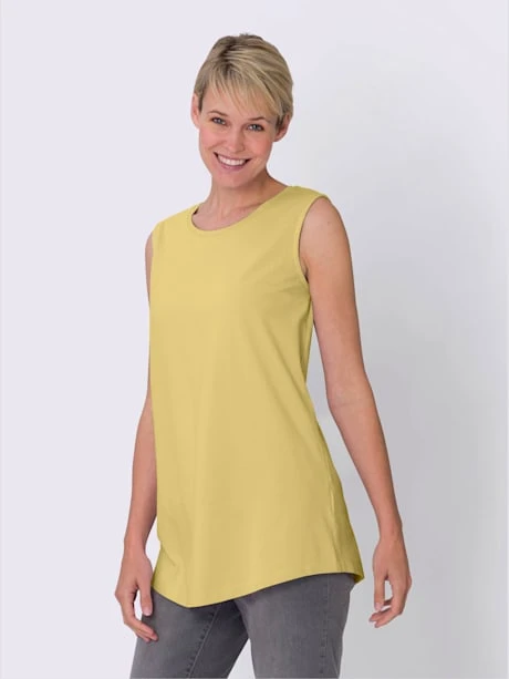 Débardeur long en piqué facile d’entretien. Coupe légèrement évasée pour dissimuler les petites rondeurs. Encolure ronde et ourlet arrondi.