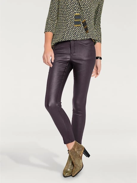Pantalon effet ventre plat. Power Mesh pour sublimer la silhouette. Élasthanne pour une tenue parfaite. Brillance raffinée. Slim Fit. Stature standard. Largeur pieds env. 31 cm.