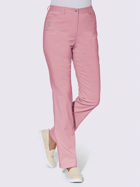 Vous va à la perfection, est agréable et offre une coupe parfaite ! Pantalon en qualité bengaline avec coutures latérales avancées pour affiner les jambes. Ceinture gainante, passants, glissière et bouton. Petites pierres métalliques couleur argenté sur les côtés. 2 poches devant et au dos. Fentes latérales pour plus de liberté de mouvement. Largeur pieds env. 42 cm. Livré sans la ceinture.
