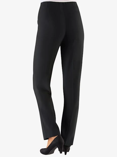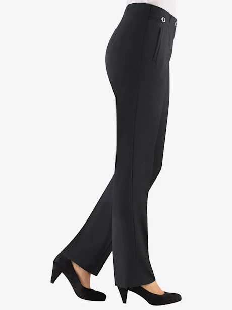 Pantalon élégant. Traitement « fresh & free » fonctionnel. Association parfaite entre look, confort et coupe. Ceinture élastique intégrée, éléments argentés et glissière et bouton devant. Poches à glissière passepoilées. Pinces flatteuses devant et au dos. Plis repassés soignés.