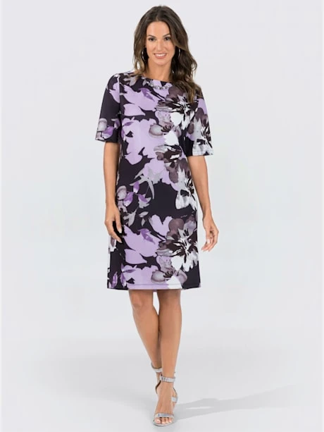Imprimé fleuri extraordinaire : superbe robe en jersey très agréable à porter avec encolure bateau. Matière haut de gamme, indéformable et opaque : ainsi, rien ne transparaît en dessous.