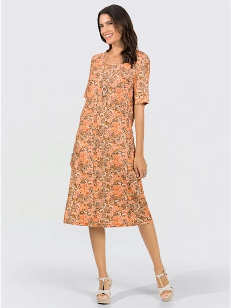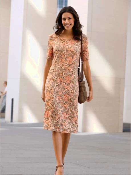Le bien-ĂȘtre Ă enfiler : profitez du cĂŽtĂ© ensoleillĂ© de la mode avec cette robe en jersey. Un tombĂ© ample et fluide grĂące Ă la matiĂšre de la viscose et Ă la coupe lĂ©gĂšrement Ă©vasĂ©e. Bordure au bas des manches courtes et aux pinces poitrine.