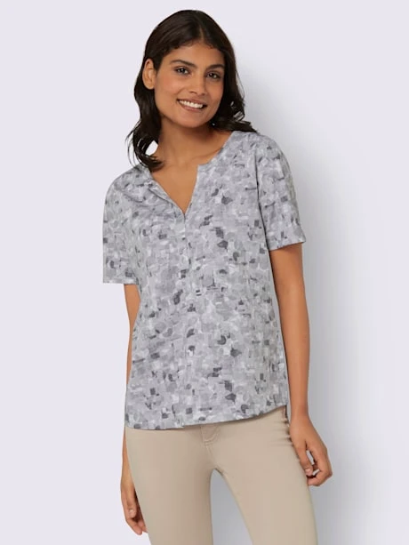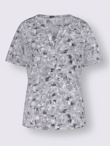 T-shirt imprimé aux coloris harmonieux, agréable à porter. Encolure ronde avec petit V et manches courtes.