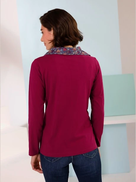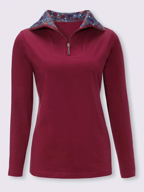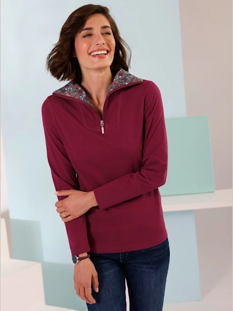 Sweatshirt doux et décontracté. L’intérieur du col camionneur est orné d’un ravissant imprimé. Glissière pratique pour faciliter l’enfilage.
