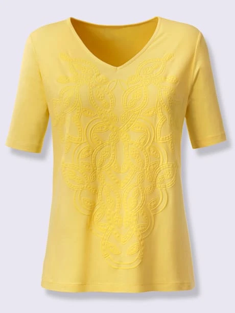 T-shirt avec superbe imprimé devant. Encolure en V affinante.