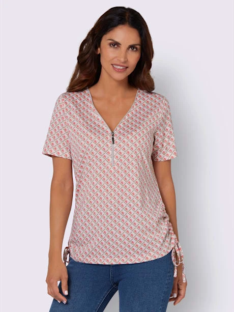 T-shirt avec imprimé graphique. Avec sa fermeture à glissière à l’encolure en V, c’est vous qui choisissez la profondeur de votre décolleté. Coulisse et lien à nouer sur le côté de l’ourlet pour un fronçage personnalisé. Achetez ce vêtement et soutenez l’initiative « Cotton made in Africa ».
